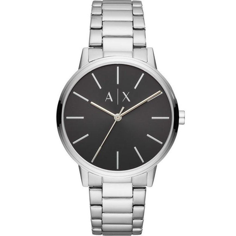 Brand: Armani Exchange; Collection: Cayde; Article Code: AX2700; Type of product: Wristwatch; Gender: Man; Functions: Just Time; Type of Movement / Mechanism: Quartz / Battery; Case Shape: Round; Case Material: Stainless Steel; Case Color: Steel; Case Diameter Ø: 42 mm; Type of Dial: Analog; Color of the Dial: Black; Strap Material: Stainless Steel; Strap Color: Steel; Water Resistance: 50 meters / 5 bar.