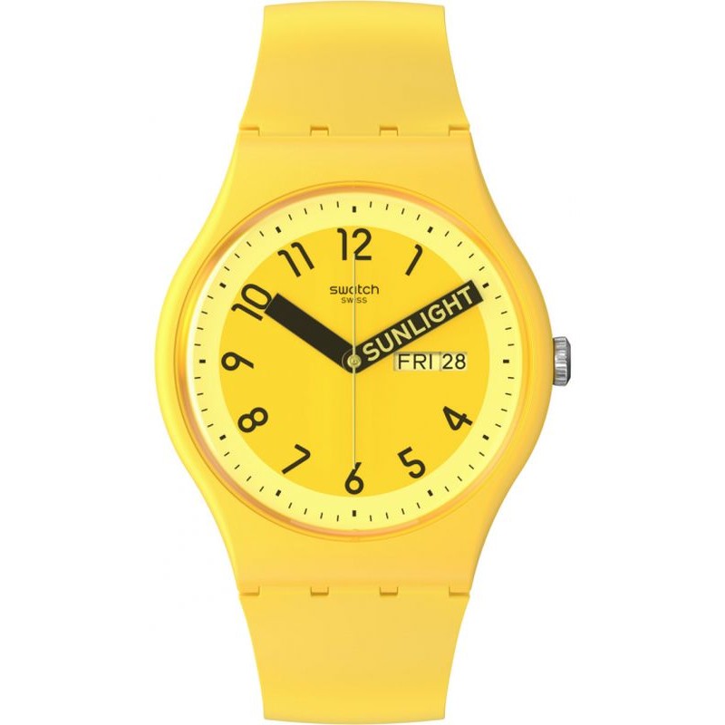 Buy Swatch Unisex Watch New Gent Proudly Yellow SO29J702 online at the best price. Swatch Unisex Watch New Gent Proudly Yellow SO29J702 is a Swatch product, Model number: SO29J702, that you find among the many proposals in the catalogue: Swatch Watches. The materials used for the case and strap, the care of workmanship of the glass, the cure for the details of the dial, the quality of movement, the original design make this wristwatch indispensable to complete your look. On our online watch shop you can find the Swatch collections for sale at discounted prices and with guaranteed quality. Check out the Specifications now to learn more about this article. Contact us now for more clarification. This product is genuine, authentic in all its parts, new with label and with original packaging.How to maintain the quality of your Swatch watch: