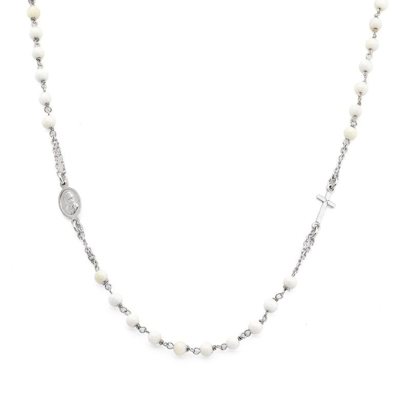 Collar Rosario Amen en plata y perlas para mujeres CROBB3