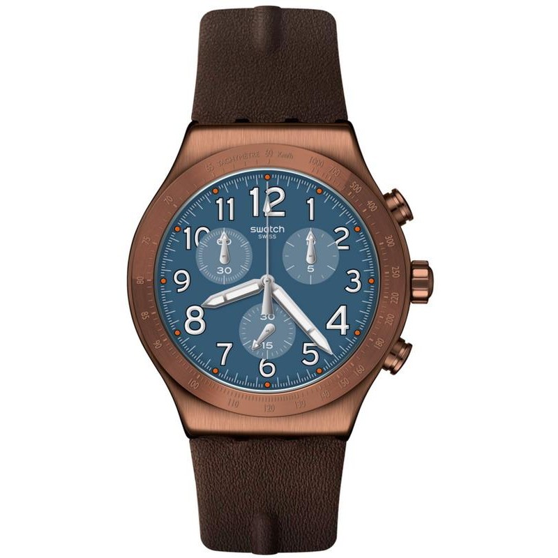 Buy Swatch Watch YVC100 online at the best price. Swatch Men's Watch Irony Chrono Back To Copper YVC100 is a Swatch product, Model number: YVC100, that you find among the many proposals in the catalogue: Swatch Watches. The materials used for the case and strap, the care of workmanship of the glass, the cure for the details of the dial, the quality of movement, the original design make this wristwatch indispensable to complete your look. On our online watch store you can find the Swatch collections for sale at special prices and with guaranteed quality. Check out the Specifications now to learn more about this Swatch Back To Copper Men's Chronograph Watch YVC100. Contact us now for more clarification. The product is genuine, authentic in all its parts, new with label and with original packaging.| Information about the watch | |